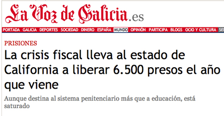 California dedica un 11% de todo su presupuesto al sistema penitenciario. Una cantidad mayor que la que destina a educación superior. Sus 167.000 reclusos hace tiempo que rebasaron la capacidad de las cárceles de un Estado con una gran crisis fiscal, incapaz de afrontar nuevas inversiones. El proyecto de presupuesto establece que algunos presos tengan reducciones en su seguro médico, terminen las condenas en su domicilio o reduzcan sus penas si concluyen programas de rehabilitación, como indica la prensa americana.