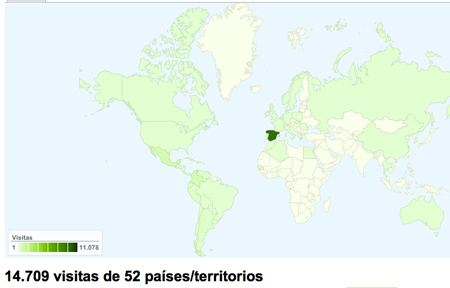 Hemos recibido, durante el pasado mes de marzo, 14.709 visitas que consultaron 23.927 páginas desde 496 ciudades de 52 países. Además, la bitácora tiene 382 suscriptores que reciben a través de email las entradas del blog. Si quieres unirte, indica aquí tu correo electrónico.