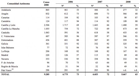 Los menores grados de rendición se observan en las Comunidades Autónomas de Andalucía, Cataluña y Madrid, que en 2006 y 2007 presentaban unos niveles de rendición próximos al 55% y en 2008 no alcanzan o superan ligeramente el 40%.