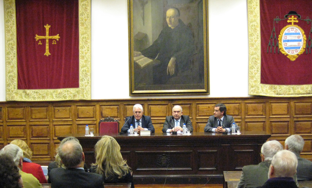 Hoy se ha presentado en el Aula Magna de la Universidad de Oviedo, el libro de Emilio Menéndez Gómez titulado “Contratos del sector público. El contrato de servicios”, de editorial Aranzadi. El rector, Vicente Gotor Santamaría (en el centro de la foto) y el Consejero de Hacienda y Sector Público del Principado de Asturias, Ramón del Riego Alonso (a la derecha) arroparon al autor que ofreció algunas reflexiones sobre la contratación administrativa.