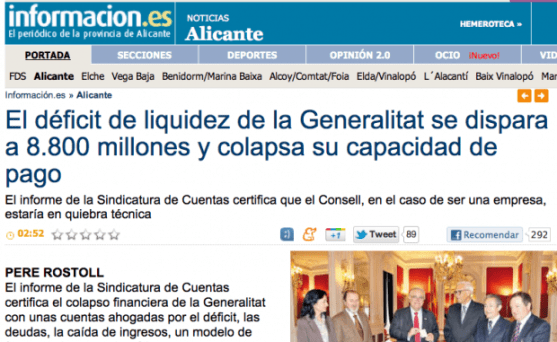 El informe corrige a la Generalitat en el volumen de compromisos de gasto con cargo a ejercicios futuros que el Ejecutivo autonómico cifró en 26.109,9 millones, pero la Síndicatura advierte que faltan otros 2.042,9 millones, hasta sumar 28.152,8 millones. Una cifra que equivale a más de dos presupuestos de la Generalitat.