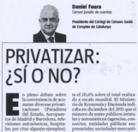 El 19 de febrero publicaba Daniel Faura un interesante artículo en la Vanguardia titulado “Privatizar: ¿si o no?” donde con elogiable equidistancia -para un auditor privado- recordaba que la privatización no es ni buena ni mala en sí misma: “todo depende de la finalidad que se propone alcanzar y del resultado futuro que se obtenga” y concluía: