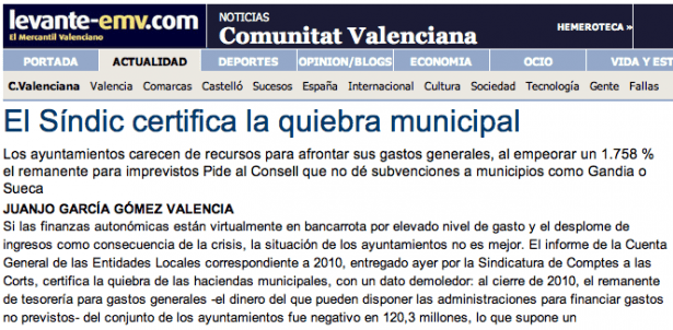 El titular que hoy encabeza esta entrada no es una frase inquietante para llamar su atención –reconozco que también- sino el primer párrafo de la nota de prensa elaborada por la Sindicatura de la Comunidad Valenciana presentando su último informe, relativo a las cuentas del Sector Local durante el ejercicio 2010.
