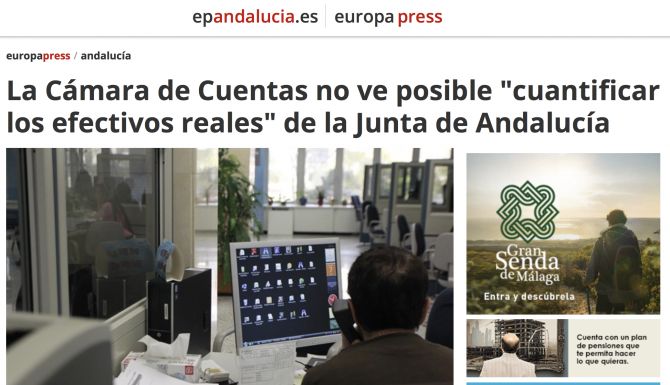 Sin embargo, la prensa se ha hecho eco de una importante salvedad, en relación con la información sobre el número de empleados públicos, pues “no resulta posible conocer ni cuantificar los efectivos reales de la Junta de Andalucía al final de cada ejercicio a partir de la información contenida en las memorias de cumplimiento de los programas presupuestarios – ni en la memoria, ambos estados incluidos en la Cuenta General rendida cada año”.