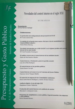 La primera es un número monográfico de la revista Presupuesto y gasto publico correspondiente al segundo trimestre de este año y titulado “novedades del control interno en el siglo XXI”. Su coordinación el Instituto de Estudios Fiscales se la encomendó a la funcionaria asturiana Emma Ramos Carvajal, que ha logrado integrar las distintas perspectivas e incluso apunta una colaboración sobre control de partidos políticos, que conoce bien tras su experiencia como diputada. Vean el sumario del que solo el primer artículo está en descarga libre.