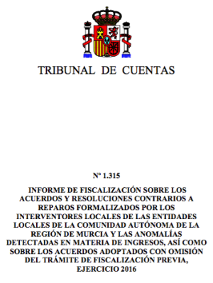 Por último, damos noticia del reciente Informe del Tribunal de Cuentas sobre los acuerdos contrarios a reparos formalizados por los Interventores locales en la Región de Murcia durante el ejercicio 2016.