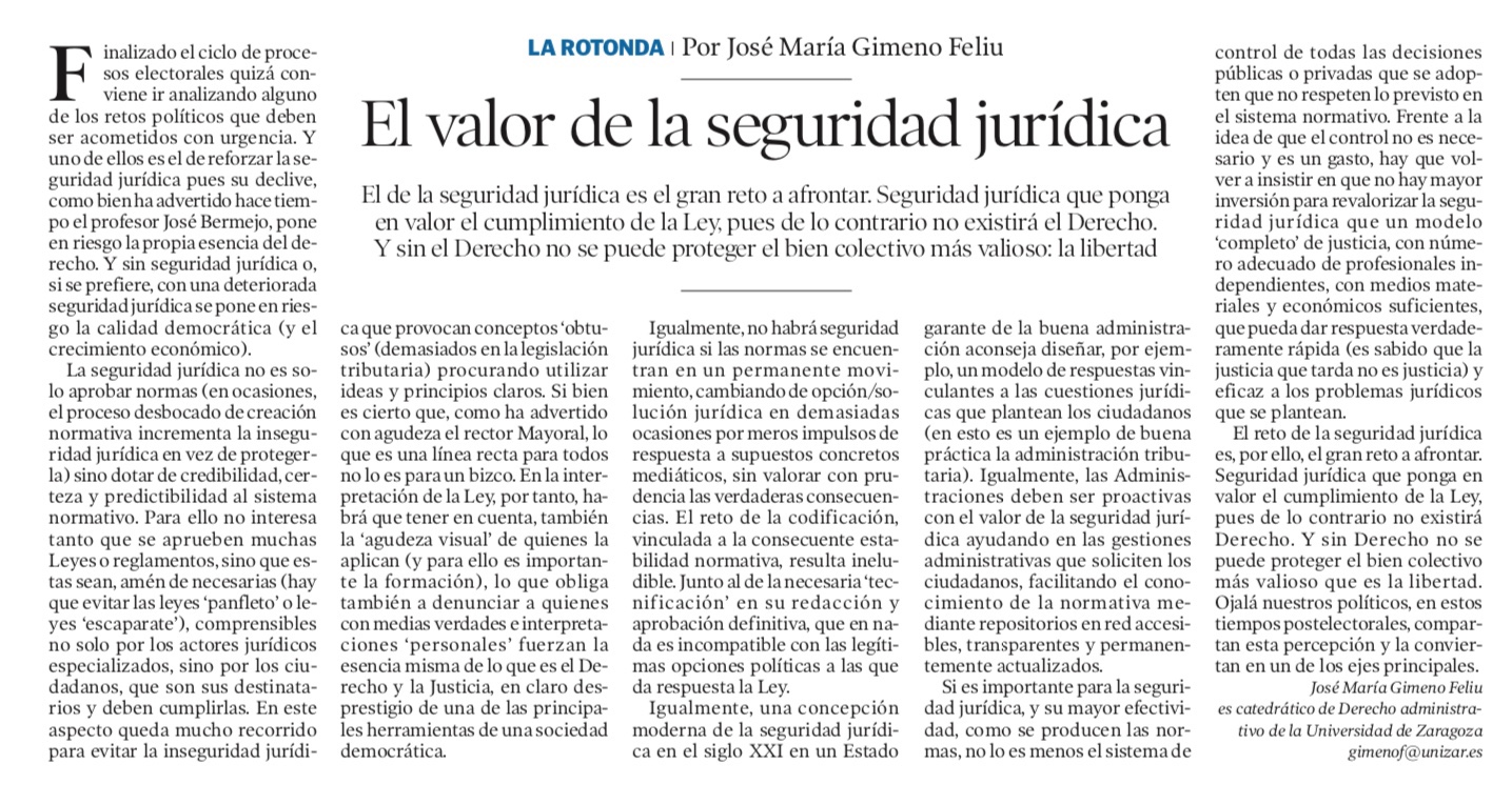 En definitiva, una obra imprescindible que mezcla la exposición de las principales novedades de la legislación con buena doctrina y mejor jurisprudencia, sin perder la crítica que su autor ha elevado a cualidad personal en sus intervenciones. Os dejo una de sus últimas tribunas en el Heraldo de Aragón.