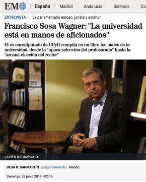 En este sentido, el fin de semana nos aportaba las declaraciones del insigne catedrático leonés, Sosa Wagner, glosando su último libro de título sugerente, Novela ácida universitaria (288 páginas y 17 euros, www.funambulista.net), que compila satíricamente los males de la universidad, desde la «opaca selección del profesorado» hasta la «arcana elección del rector». En la contraportada podemos encontrar la primera bala, a modo de presentación:
