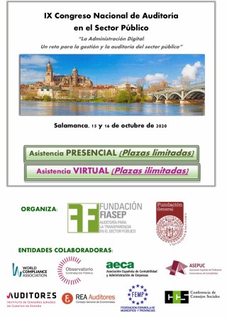 Por otro lado, tenemos en la Universidad de Salamanca los días 15 y 16 de octubre de 2020 el IX Congreso Nacional de Auditoría en el Sector Público que bajo el lema “La Administración digital: Un reto para la gestión y la auditoría del sector público”. El evento se celebrará de manera presencial (plazas limitadas) y también on line (con precio reducido antes del 1 de septiembre)