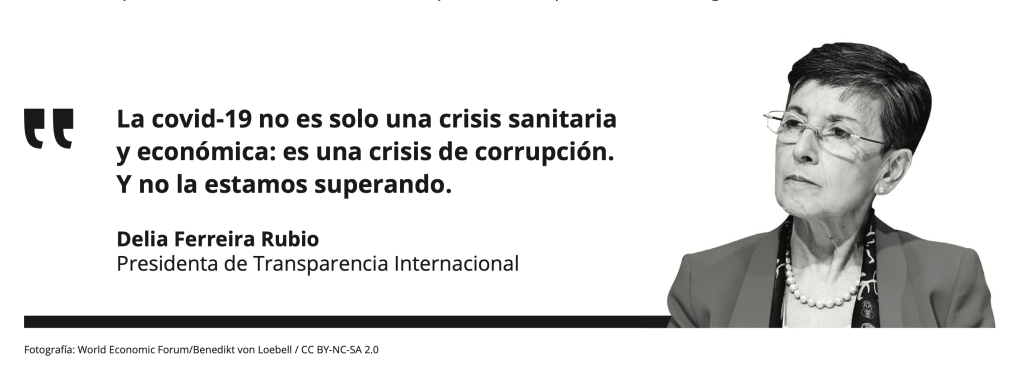 Entiende TI que los gobiernos se han visto expuestos a un escenario propicio para la corrupción y malas prácticas en esta crisis sanitaria: suministros de emergencia que generan un escenario de especial vulnerabilidad y que constituyen un campo fértil para la corrupción: “casos de fraude, de suministros defectuosos y de retrasos injustificados, entre otras irregularidades, que se han dado en diversos países de nuestro entorno”.