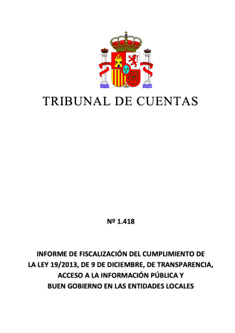 El Tribunal de Cuentas publicó durante el pasado mes de enero el Informe de fiscalización del cumplimiento de la Ley 19/2013, de 9 de diciembre, de transparencia, acceso a la información pública y buen gobierno en las entidades locales.