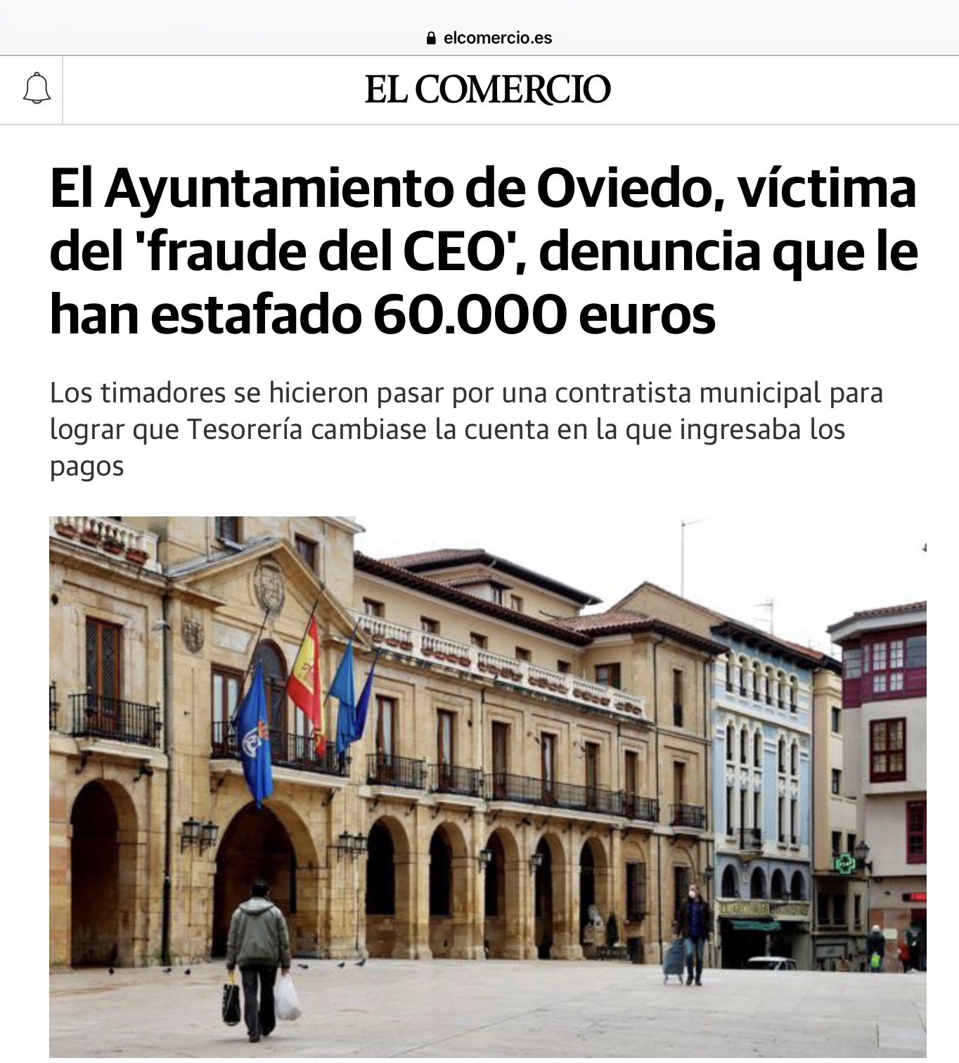 El asunto comienza a ser muy frecuente. No hay Administración donde no se haya intentado. En el Ayuntamiento de Avilés se dieron cuenta a tiempo del delito. En la Comunidad valencia la EMT tuvieron éxito los defraudadores.
