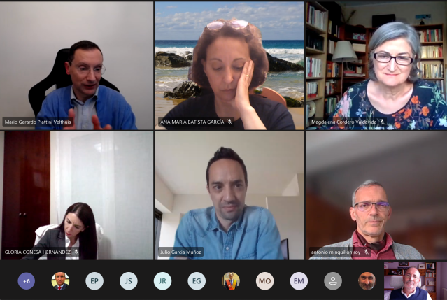 Acompañamos al ponente, junto al coordinador Julio García, los profesores Magdalena Cordero (TCEu), Antonio Minguillón (Sindicatura Comunidad Valenciana) y yo mismo. Es lo bueno que tiene este tipo de formación oficial a distancia, que los profesores se conectan, distantes cientos o miles de kilómetros, como los alumnos para disfrutar de sus contenidos. Los debates son interesantísimos, y las cuestiones planteadas muy participativas y reales.