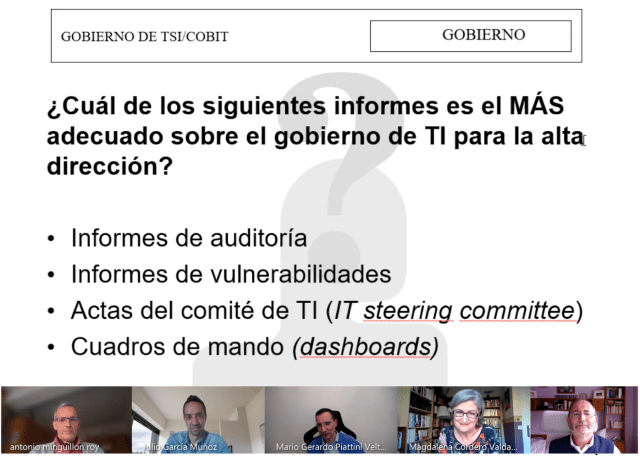 Otro tema que ha centrado las clases de Piattini esta semana es el gobierno de las tecnologías de información (TI) que es necesario para que las organizaciones aprovechen al máximo las ventajas de esas herramientas, maximicen los beneficios y controlen los riesgos.
