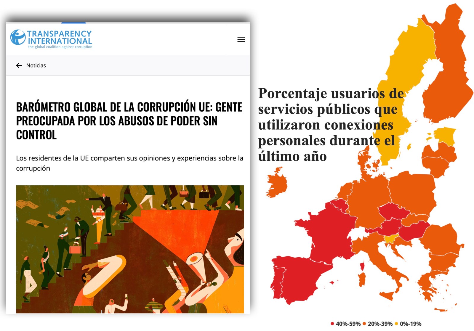Si bien siguen siendo bajas las tasas de soborno, del siete por ciento, descubrimos la alta proporción de eso que podríamos llamar corrupción de baja intensidad. Así, tres de cada diez personas usaban una conexión personal para acceder a la atención médica, la educación y otros servicios públicos. Esto equivale a más de 106 millones de personas en todo el bloque.