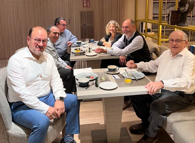 Los congresos profesionales presenciales suponen una magnífica oportunidad para reencontrar a colegas, ponernos al día de los problemas y de las soluciones del sector. Se desarrollan en el aula y fuera de ella. Mi momento preferido es el desayuno. Se desarrollan en el aula y fuera de ella. Mi momento preferido es el desayuno. En la foto de abajo con los miembros de la Sindicatura catalana, junto a Vicente Montesinos, padre académico de la contabilidad pública española, y Antonio López Díaz, actual rector magnífico de la Universidad de Santiago de Compostela que fue Conselleiro Maior del Consello de Contas de Galicia.