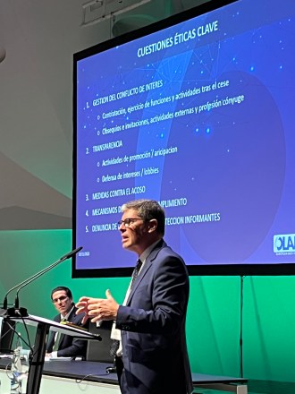 Por su parte, Eduardo Cano de la OLAF recalcó la necesidad de promover la cultura ética y del comportamiento ético en general, insistiendo también en el liderazgo como ejemplo de integridad. Dejó como pautas de reflexión, la existencia de regímenes éticos diferentes según se pertenezca a la plantilla de personal o de Altos Cargos, que además tienen regímenes jurídicos diversos según las instituciones a que pertenezcan. En cualquier caso, marcó como líneas de trabajo futuro afinar y armonizar los sistemas que regulan las actividades profesionales tras el cese en el servicio a la UE, armonizar las reglas sobre obsequios e invitaciones, aumentar el rigor y la transparencia en las declaraciones de intereses financieros de las Miembros de la Instituciones y por ultimo acelerar los procedimientos sancionadores y aumentar su ejemplaridad.