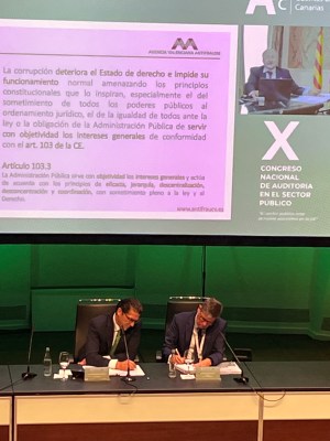 El titular lo extraigo del panel inicial del X Congreso Nacional de Auditoría del sector Público moderado por Luis Álvarez Arderius, Jefe de Servicio de Asuntos Económicos y Presupuestarios del Parlamento de Canarias. Participaban como conferenciantes Joan A. Llinares, director de la Agencia Valenciana Antifraude (AVAF) y Eduardo Cano Romera, Jefe de Unidad en la Oficina Antifraude Europea (OLAF). El primero participaba en remoto y el segundo presencial como pueden ver en la foto adjunta.
