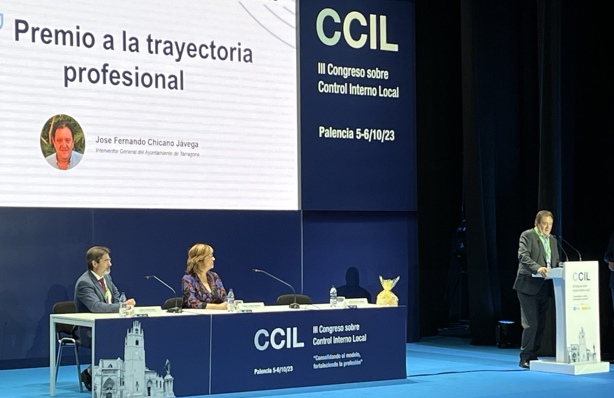La jornada final terminó, justo antes de las conclusiones -que publicaremos en una próxima entrada- con el premio a la trayectoria profesional de José Fernando Chicano, Interventor General del Ayuntamiento de Tarragona y uno de los referentes y dinamizadores del sector que valoran su integridad, generosidad y rigor. Le veis en la foto final emocionado por el homenaje de sus colegas.