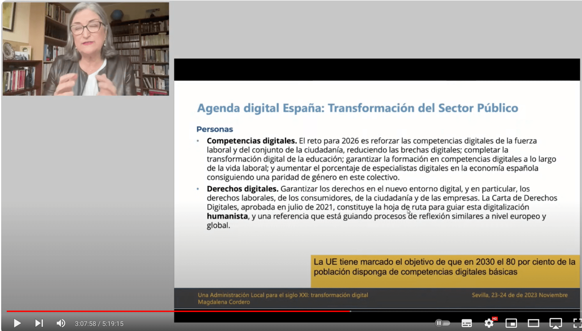 A continuación, se celebró una mesa bajo el lema «Una Administración Local para el s. XXI Transformación digital» y en la que Magdalena Cordero Valdavida, Directora de Información, entorno de trabajo e innovación hasta hace pocos meses en el Tribunal de Cuentas Europeo, estuvo exponiendo distintos aspectos relacionados con la transformación digital de las administraciones, sus implicaciones y consecuencias. Francisco Fernández Lineros, Director General de Modernización Digital del Ayuntamiento de Sevilla, expuso el caso real del proceso de transformación digital del área de gestión económica de su Ayuntamiento, de cómo mucho procesos tradicionales de gestión y de fiscalización se están modernizando, modificando, simplificando y adaptando a un entorno 100% digitalizado, automatizando procedimientos y controles, y eliminando completamente el papel; destacó la importancia de disponer de una planificación estratégica de las TI y de una adecuada gobernanza de las TI y de los proyectos de TI para que estos llegaran a buen puerto.