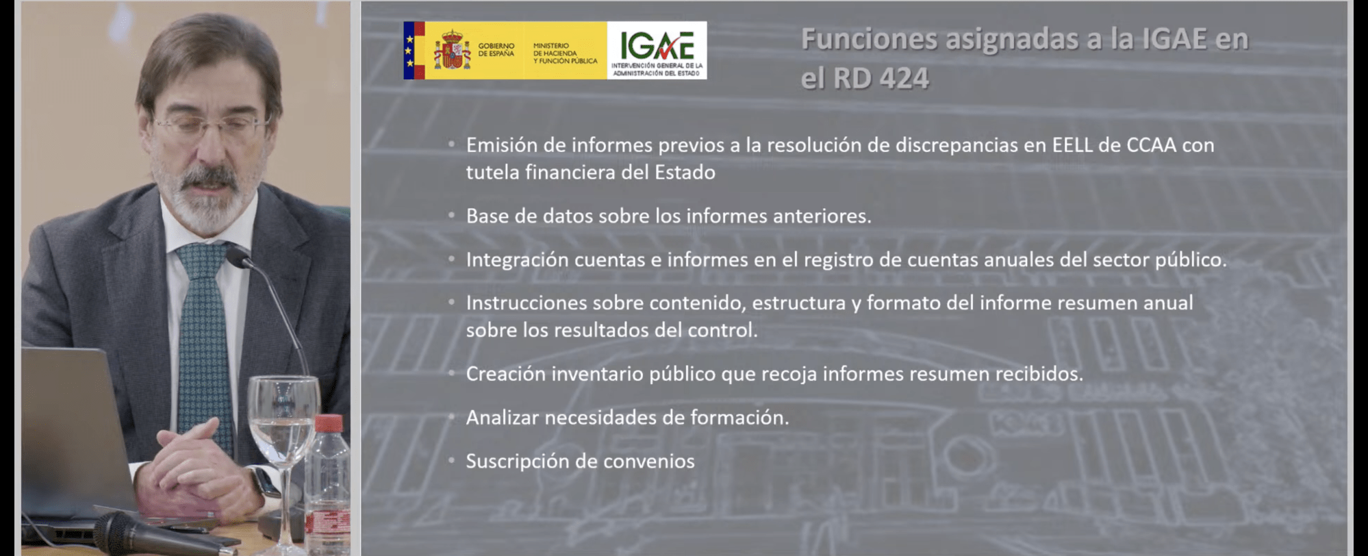 Continuando con los participantes de la IGAE, Mercedes Vega García, Subdirectora General de Estudios y Coordinación de la IGAE hizo un completo repaso a “La experiencia de la aplicación del Real Decreto 424/2017” el subtítulo de su ponencia es bastante ilustrativo de su interesante exposición: “Luces y sombras. Lecciones para la regulación del control interno en las entidades locales”. En su intervención comentó cuales habían sido aquellos aspectos cuya implementación había sido más difícil y complicada. Como todas las ponencias de Mercedes Vega, fue muy clara y bien fundamentada y apuntó finalmente que el RD 424 quizá adolece de escasas referencias al uso de la tecnología en la actividad interventora.
