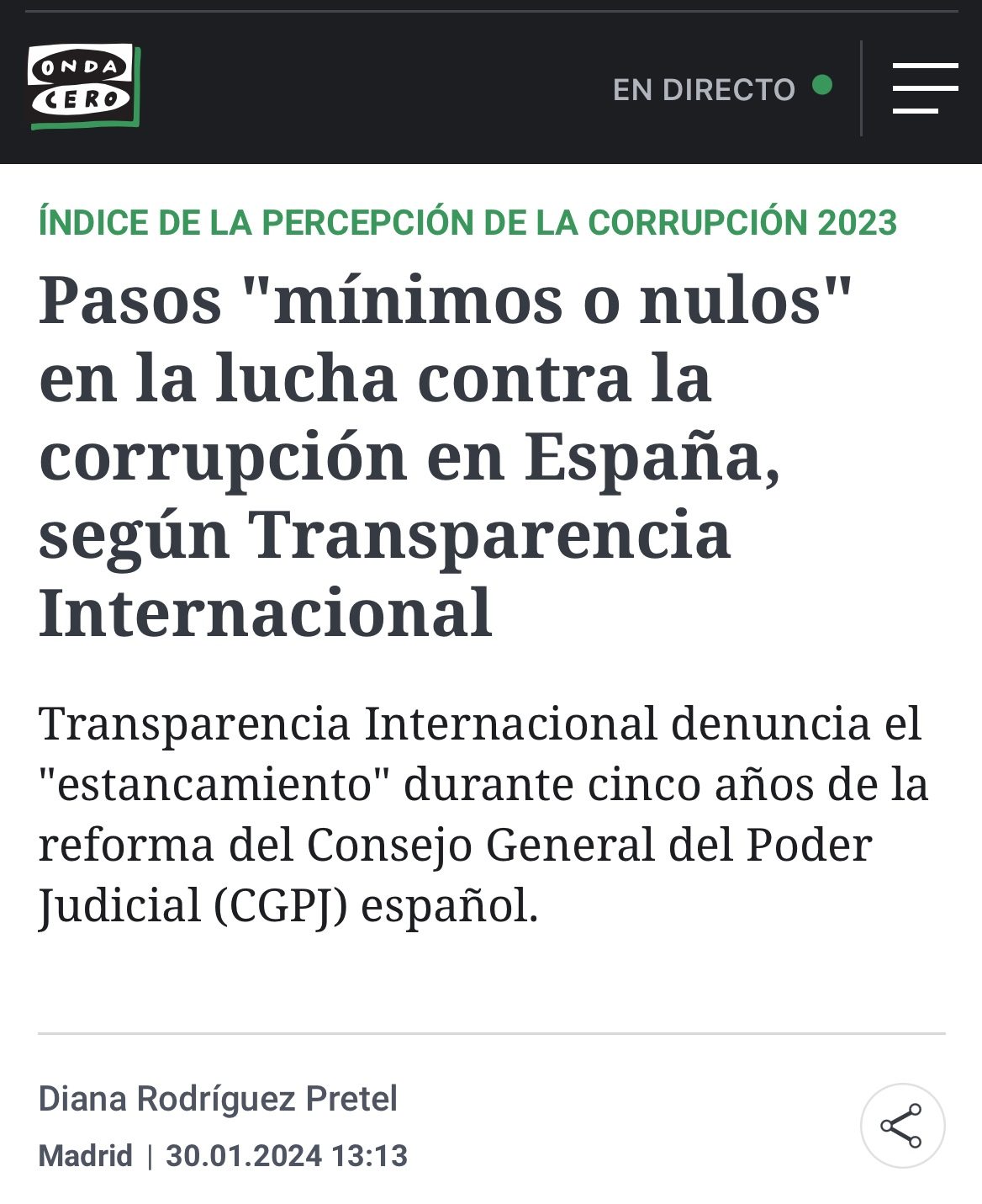 La mala posición en que parece instalado el Estado español dentro del ponderado estudio anual sobre la corrupción que la organización Transparencia internacional presenta cada mes de enero marca un rumbo que debería hacernos reflexionar. A ello vamos.