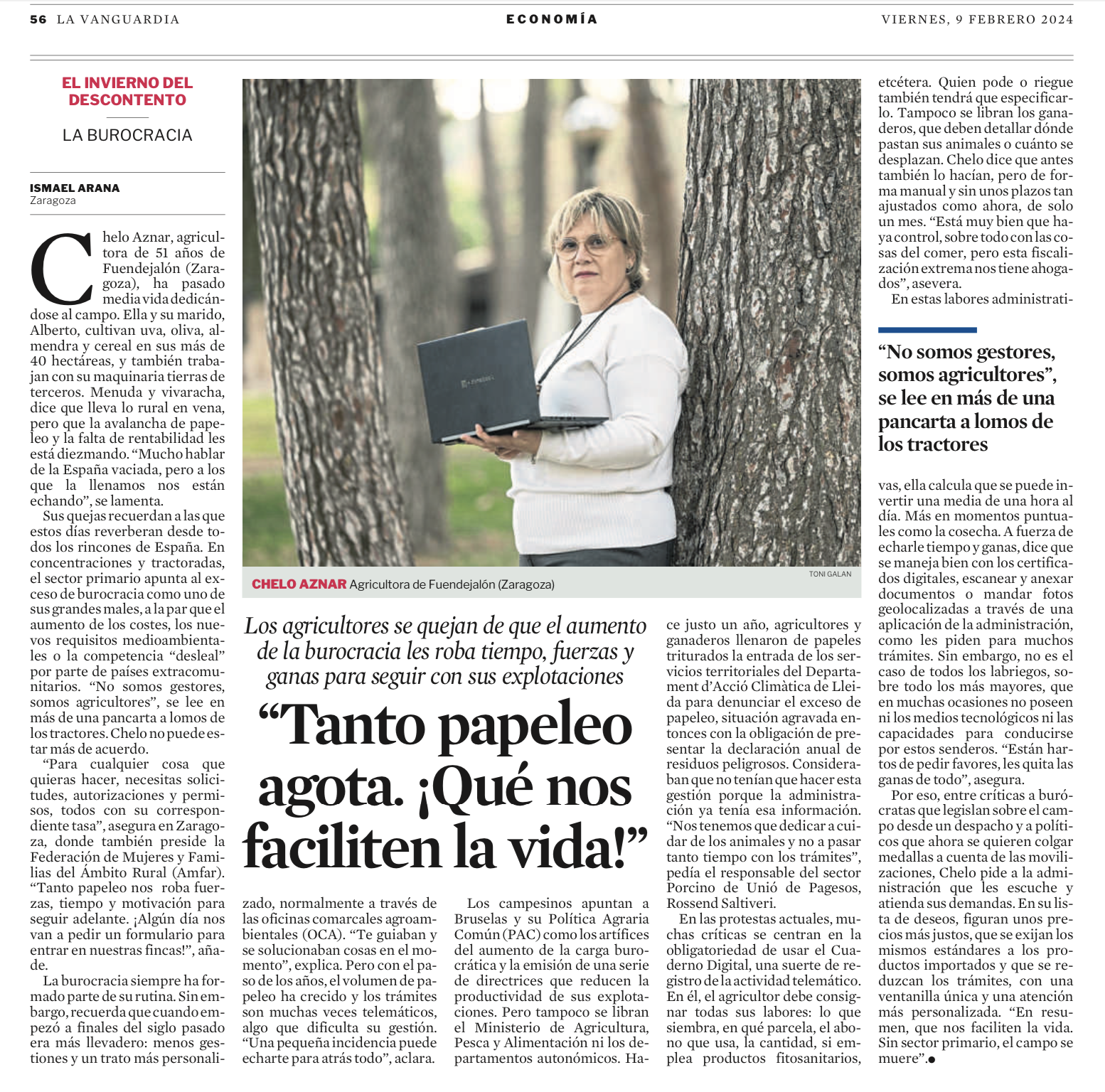 Los últimos en llegar al problema son nuestros agricultores y ganaderos, que se quejan de la elevada tarea encomendada en su Cuaderno Digital, un registro telemático de la actividad que puede llevarles una hora diaria. La entrada en vigor se ha ido escalonando hasta 2025 en función del tamaño de la explotación aunque incentivando su uso como beneficiarios de subvenciones agrícolas. El ministerio afirma que todos ganan con tanta información disponible. Desde el cumplimiento de la normativa hasta la eficiencia de la explotación. El suministro de datos acabará permitiendo estadísticas casi en tiempo real y un cuadro de mando que no sea el espejo retrovisor. El Tribunal de Cuentas Europeo ya nos dejó algún recado en este tema.
