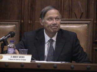 Hubert Weber es una de las grandes personalidades mundiales de la fiscalización de los fondos públicos. Acaba de dar la lección inaugural de V Congreso Internacional de control público que se desarrolla esta semana en la Universidad de Salamanca. El catedrático granadino de contabilidad y consejero de la Cámara de Cuentas de Andalucía, Antonio López Hernández, hizo su presentación) ver foto superior) ante el publico mayoritariamente iberoamericano que asiste al evento. Apuntamos a continuación algunos rasgos de su brillante trayectoria vital y profesional, así como de las sugerentes aportaciones de su conferencia.