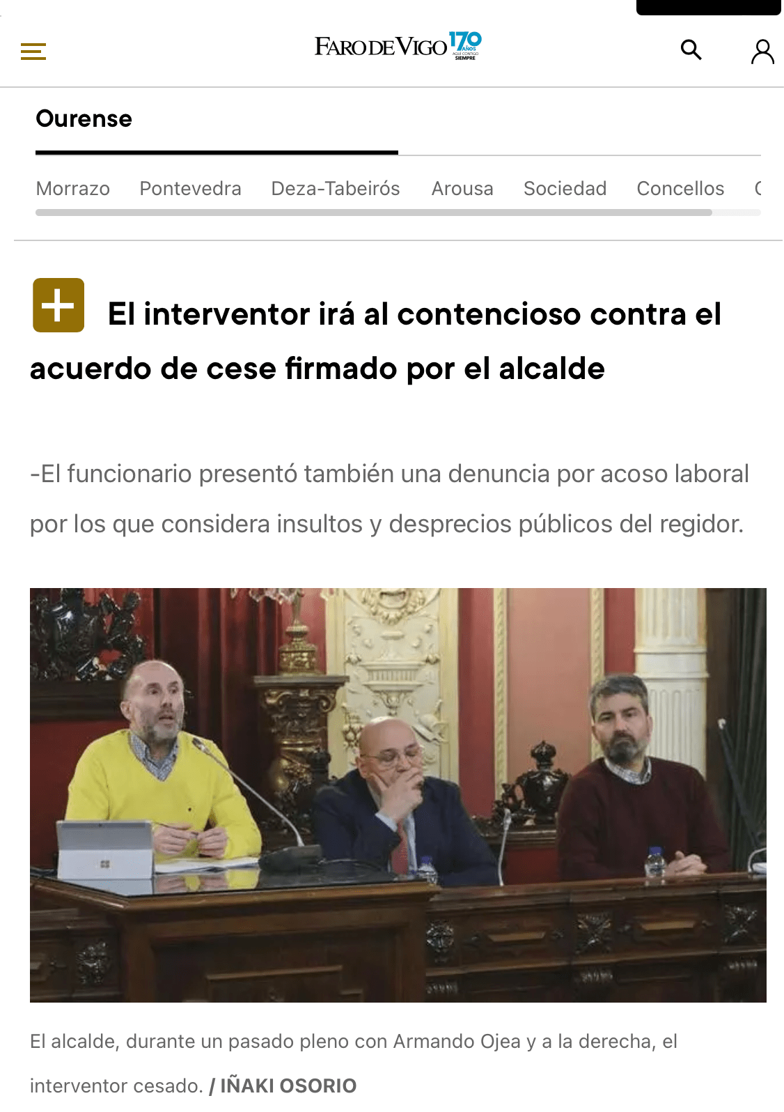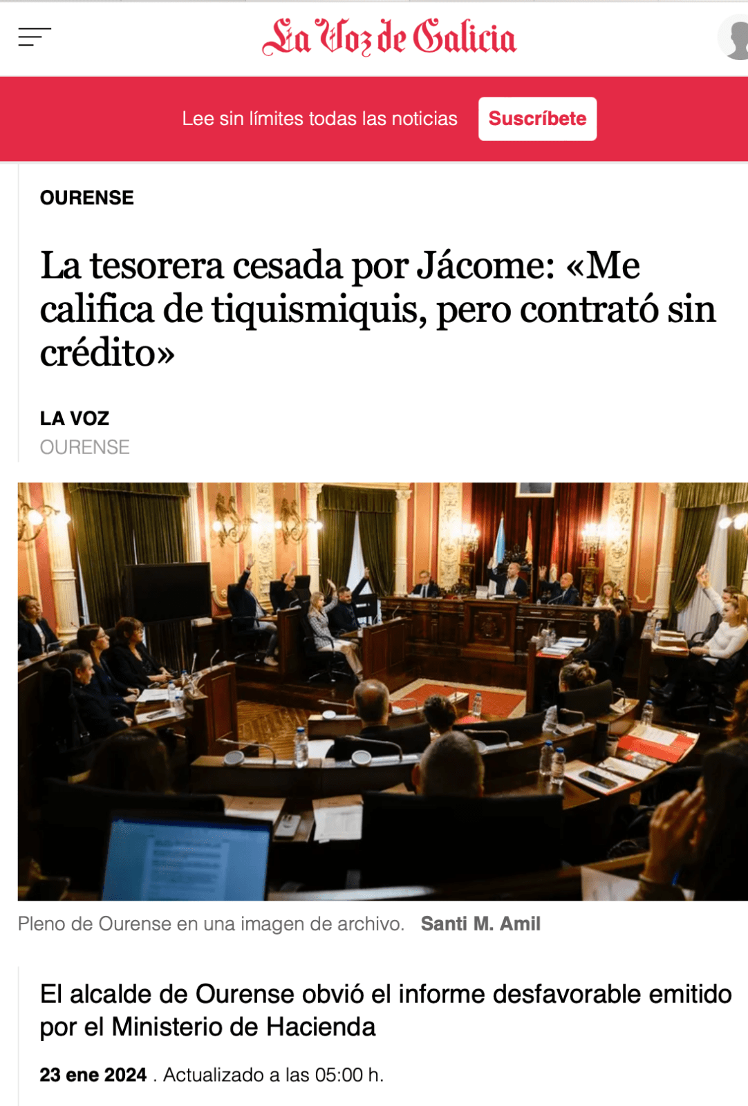 La verdad es que los habilitados nacionales son una joya de nuestra vida local. Sin ellos no se entiende la política municipal, ni el funcionamiento de su Administración. Por eso me desagrada la noticia de la destitución del Interventor del Municipio de Orense, donde su alcalde, Gonzalo Pérez Jácome parece haber iniciado una verdadera huida de la realidad administrativa, en medio de serios problemas de estabilidad presupuestaria, con quince millones de euros en la cuenta 413 (obligaciones con acreedores por operaciones pendientes de aplicar a presupuesto) y treinta millones de reclamaciones de empresas concesionarias sin contabilizar.
