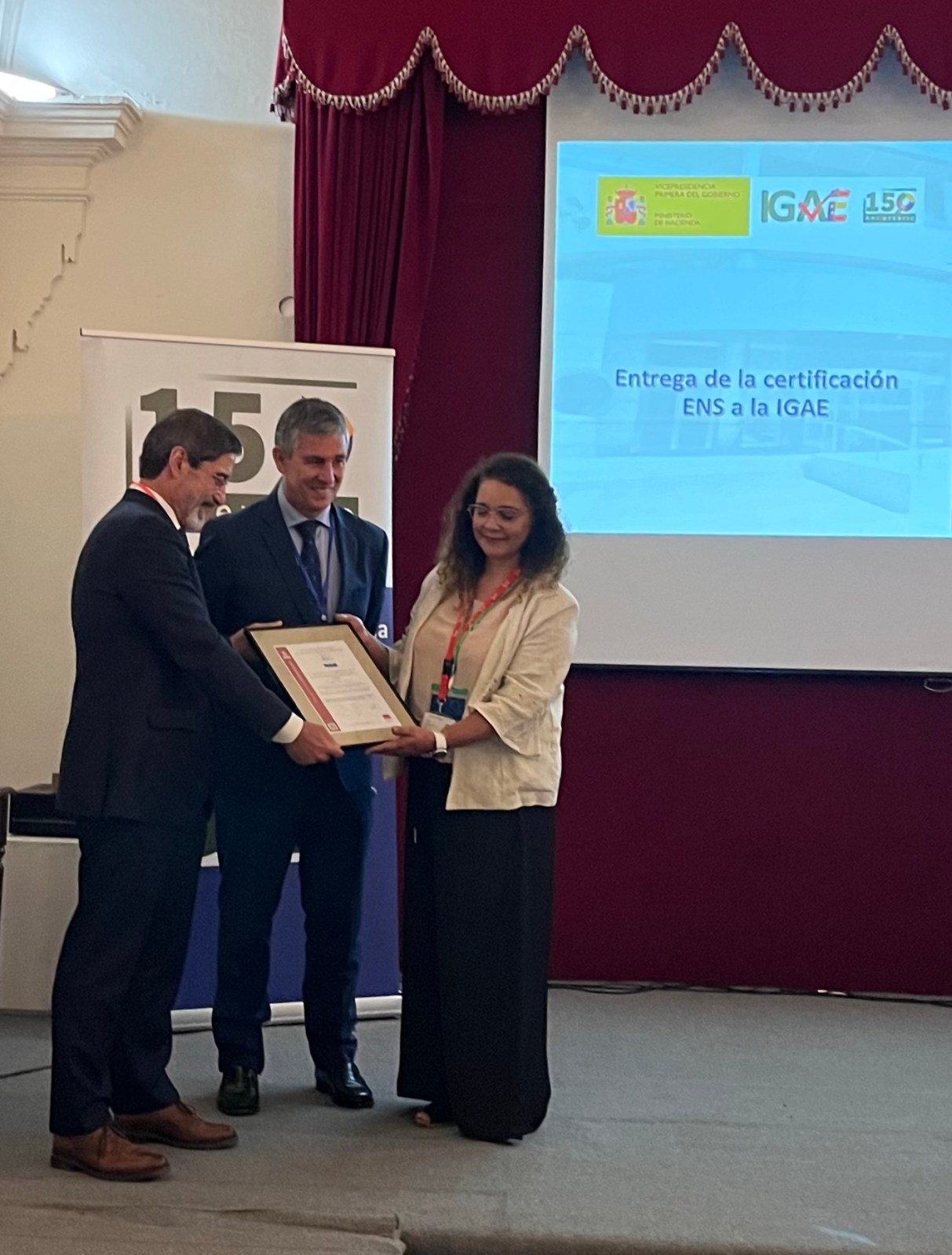 Pablo Arellano recogiendo para la IGAE la Certificación del ENS emitida por Bureau Veritas, ante Javier Candau (CCN)
