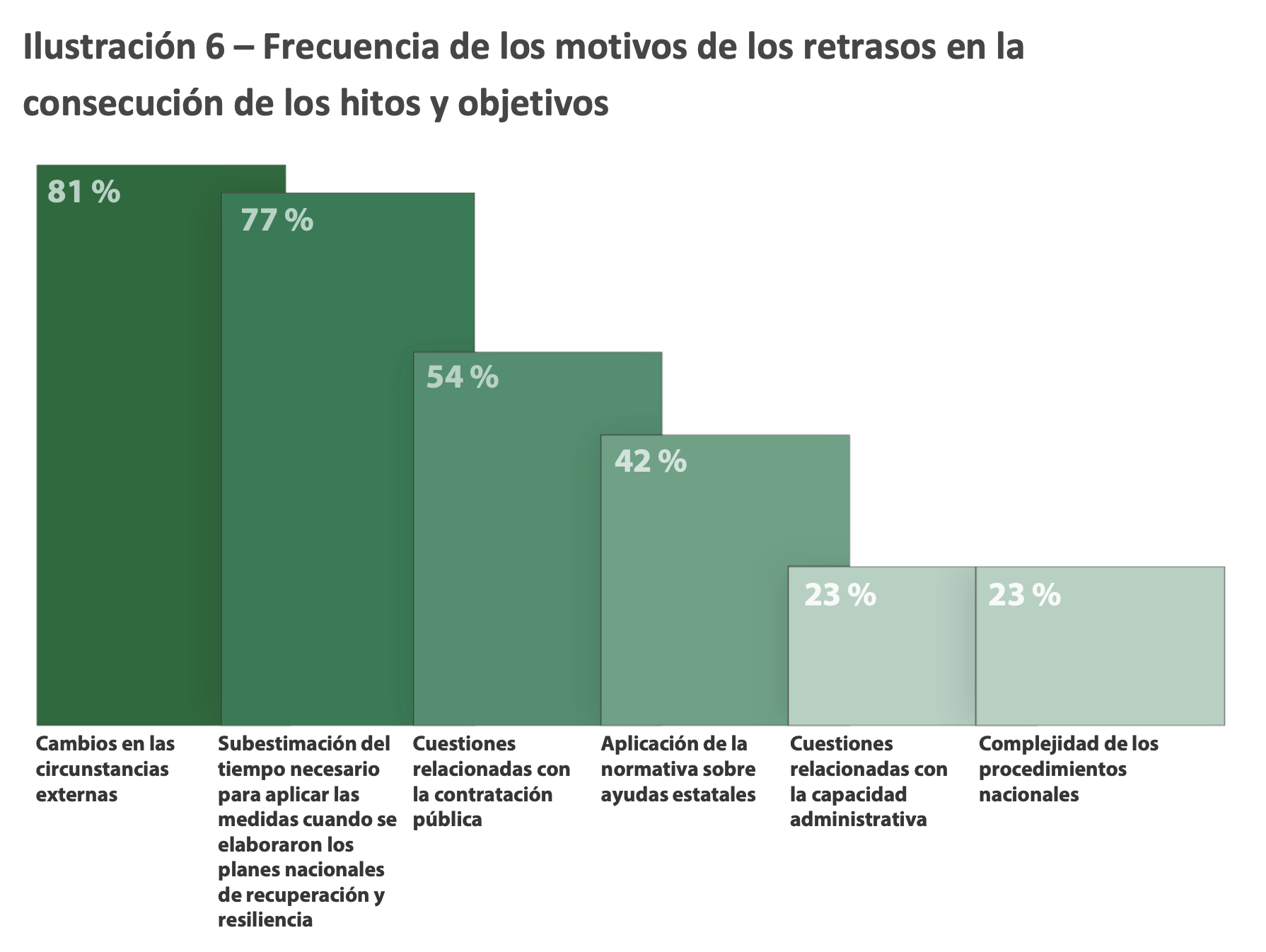 Aparece con frecuencia la contratación como argumento esgrimido por las autoridades nacionales y que el tiempo de ejecución de los proyectos fuera mayor del previsto. La respuesta de los auditores es la habitual: “Ninguno de estos factores es novedoso o específico del MRR, lo que indica que la causa de estos retrasos no es la propia normativa, sino la subestimación del tiempo necesario para aplicarlas a la hora de seleccionar las medidas que deben figurar en los planes nacionales de recuperación y resiliencia”.