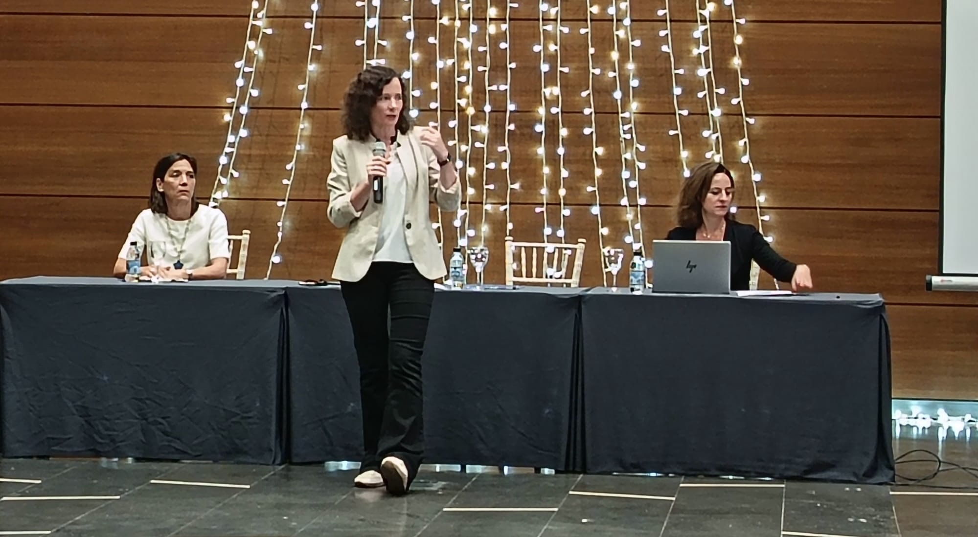 Carmen de Guerrero, dirigiendo la mesa con Ana Gómez (izda) y Elena Hernáiz (dcha)