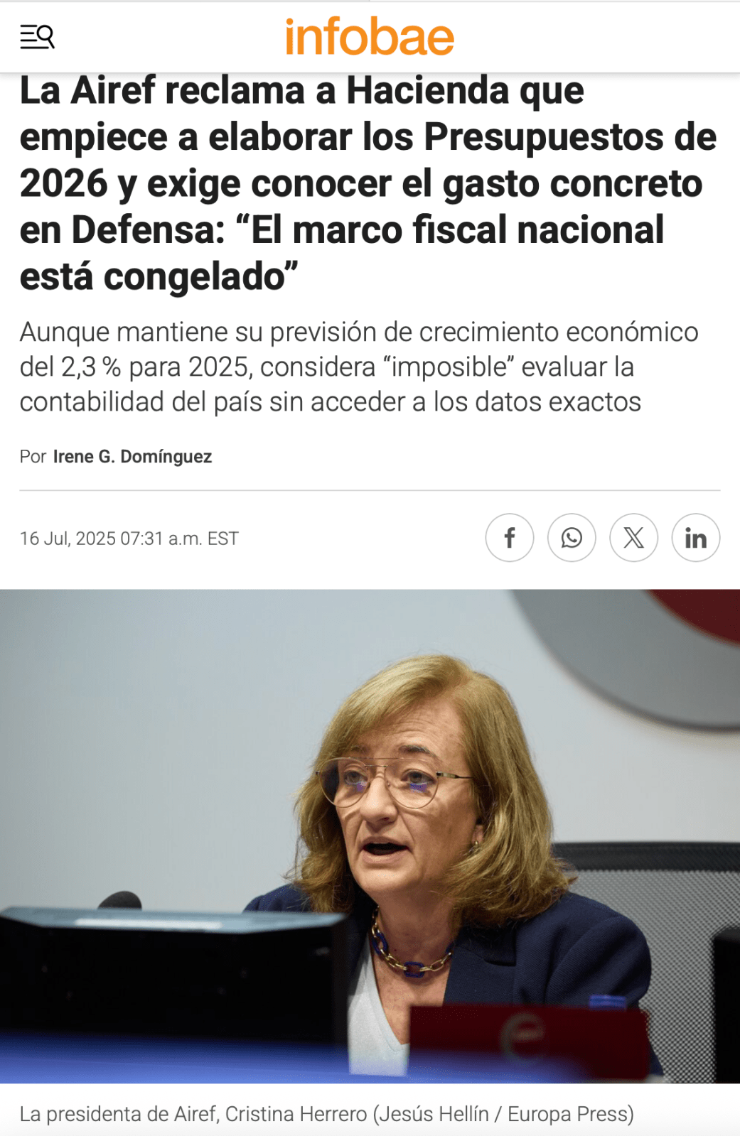 Pues bien, un reciente trabajo de la AIREF sobre la ejecución presupuestaria, deuda pública y regla de gasto 2025 de las AAPP, fechado hace un par de semanas, anticipa el incumplimiento de los objetivos de gasto en la Administración Central y Autonómica. Algo que exigirá medidas adicionales para reducir gastos o aumentar ingresos por 11.000 millones antes de final de año. Como mínimo, porque deja muchos recados. Veamos.