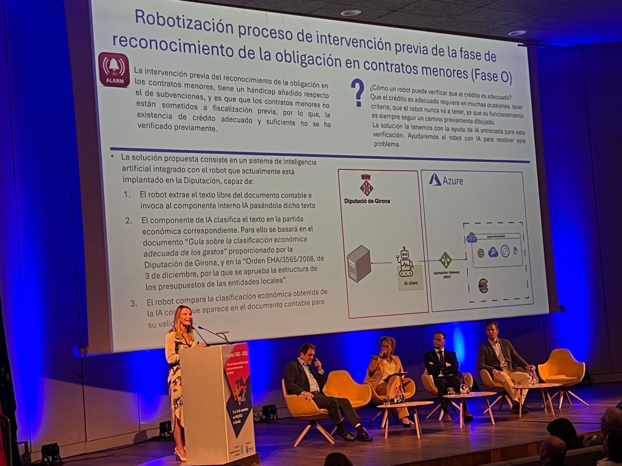 Sin embargo, advirtió de que la robotización también plantea límites. En el caso de los contratos menores, “el robot no puede determinar por sí mismo si el crédito presupuestario es el adecuado, ya que esto exige criterio interpretativo”. La solución está en combinar la automatización con inteligencia artificial (IA) entrenada para clasificar económicamente los gastos conforme a la normativa presupuestaria. “De este modo, la máquina no sustituye al interventor, sino que se convierte en un aliado que amplifica su capacidad de análisis”.
