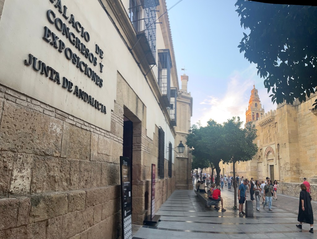 Una de las enormes ventajas del Palacio de Congresos de Córdoba es, junto a las magnificas instalaciones y patios, su excepcional ubicación, en pleno centro de la ciudad, como podéis ver en la foto, a escasos metros de ese grandioso monumento que es la Mezquita-Catedral. Rodeado de varios hoteles de tamaño medio donde muchos de los 700 asistentes (que gran efecto multiplicador en el territorio) nos alojamos y podíamos llegar en unos pocos minutos, atravesando cada mañana el majestuoso patio de los naranjos, que es parte del monumento.