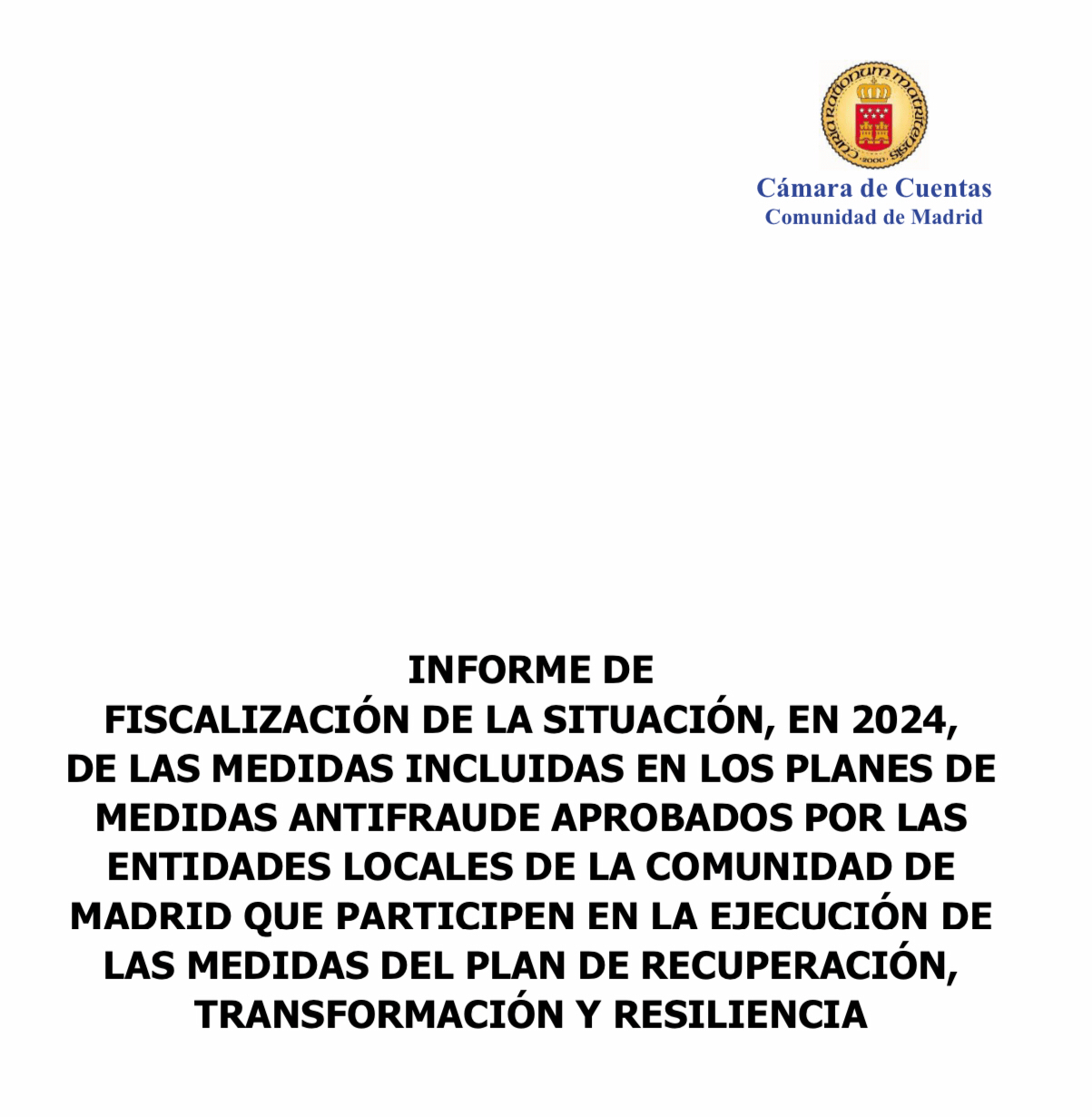 La cámara verificó si las entidades ejecutoras de las medidas del Plan de Recuperación, Transformación y Resiliencia (PRTR) habían avanzado en el desarrollo de las medidas antifraude previstas en los planes aprobados, valorando los procedimientos de ejecución y desarrollo de las citadas medidas. En ambos casos, se evalúa, desde los diversos enfoques mencionados, la situación hasta 2024. Por eso es una buena práctica su lectura para los gestores involucrados en cualquier PMA
