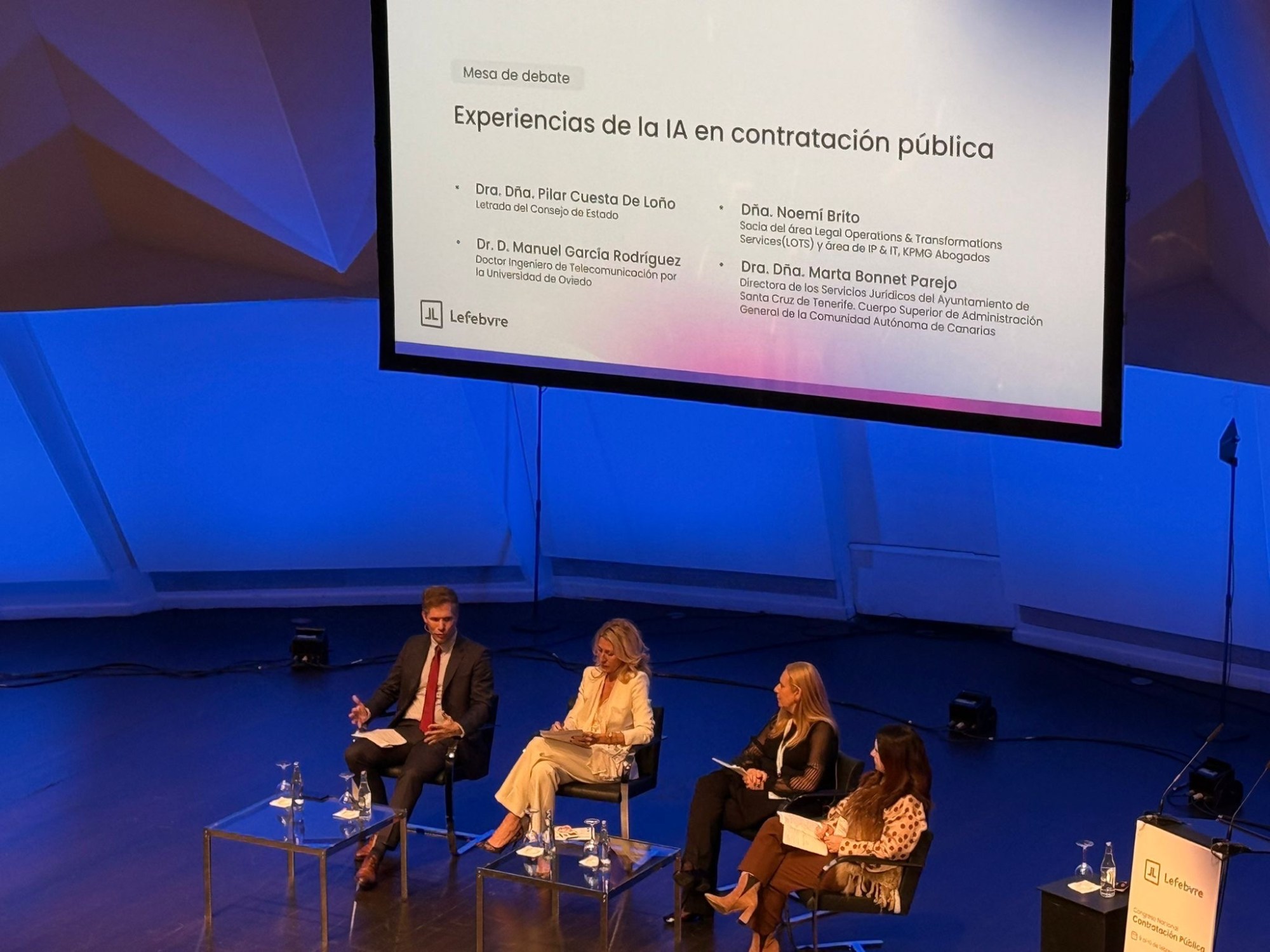 El segundo congreso nacional de contratación pública, organizado por el grupo Lefebvre, se clausuró hoy en Santa Cruz de Tenerife. Presentó en su apretado programa un interesante debate entre Marta Bonnet Parejo, directora de los Servicios Jurídicos del Ayuntamiento de Santa Cruz de Tenerife, Noemí Brito Socia del área Legal de KPMG y Manuel García Rodríguez, Doctor Ingeniero de Telecomunicación al servicio del Banco de España. La moderación de la mesa corrió a cargo de Pilar Cuesta De Loño, codirectora del magno evento. El tema monográfico giraba alrededor de las experiencia de la IA en materia de contratación pública.