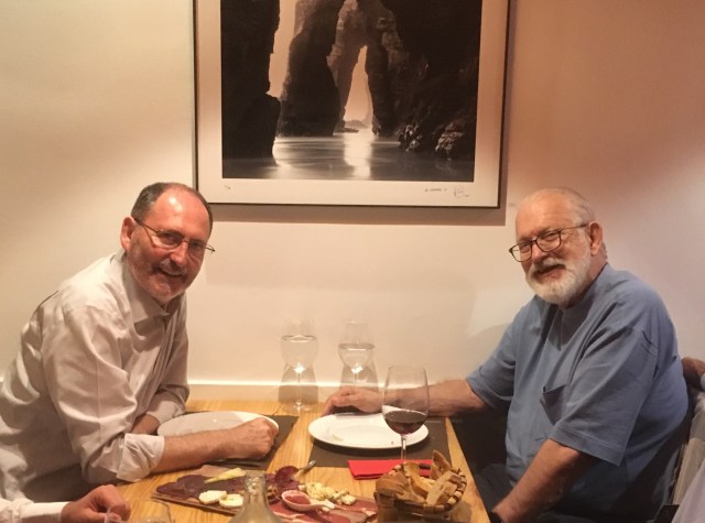 En la foto siguiente con Leontxo García, el periodista especializado en ajedrez más popular y un viajero contumaz, donde podéis ver que 25 años no es nada: